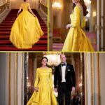 Buckingham Palace glittered with grandeur last night, but it was Princess Catherine, the Princess of Wales, who captured every gaze the moment she stepped into the historic ballroom. Dazzling in a bold yellow gown that shimmered under the chandeliers, and adorned with a pair of the late Queen’s most iconic diamond earrings, Catherine proved once again why she is hailed as the undisputed style star of the monarchy.