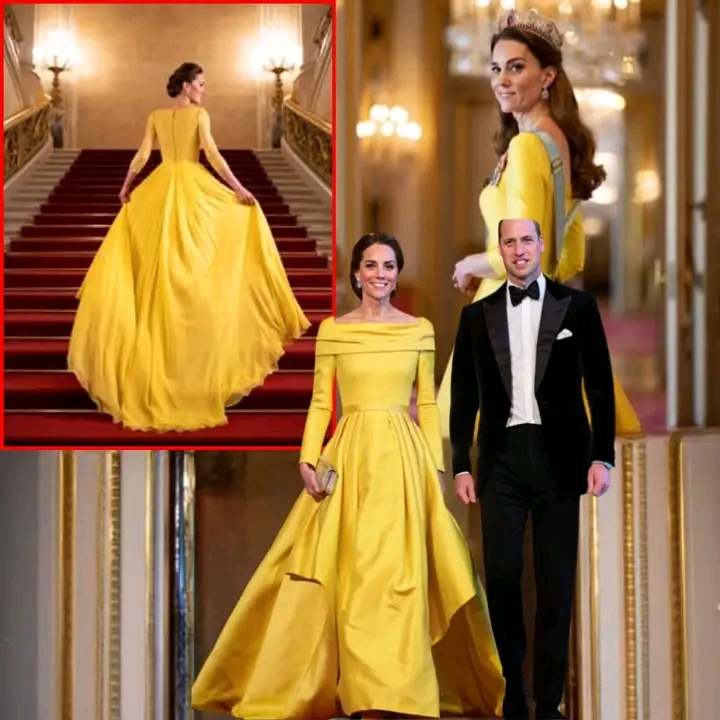Buckingham Palace glittered with grandeur last night, but it was Princess Catherine, the Princess of Wales, who captured every gaze the moment she stepped into the historic ballroom. Dazzling in a bold yellow gown that shimmered under the chandeliers, and adorned with a pair of the late Queen’s most iconic diamond earrings, Catherine proved once again why she is hailed as the undisputed style star of the monarchy.