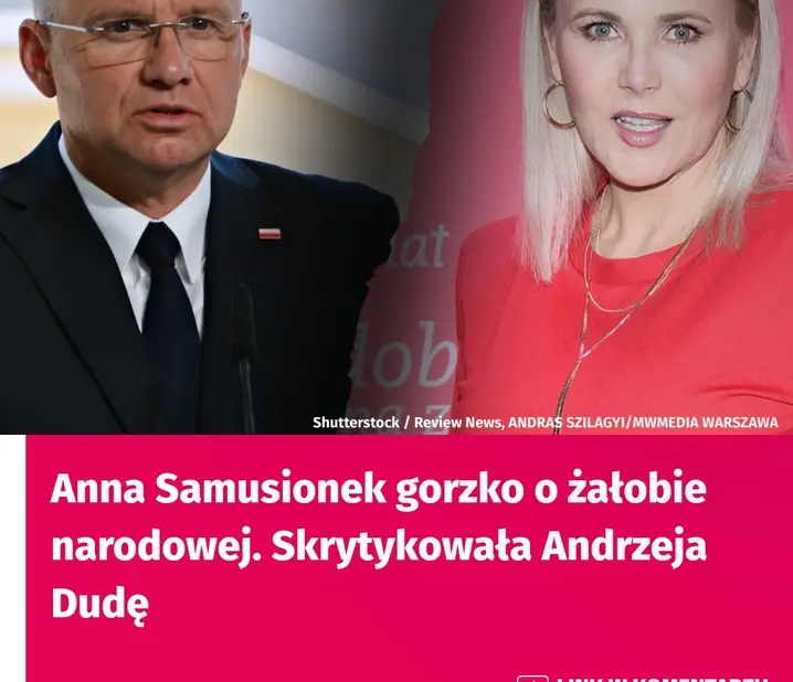 PlejadaNewsyAnna Samusionek gorzko o żałobie narodowej. Skrytykowała Andrzeja Dudę