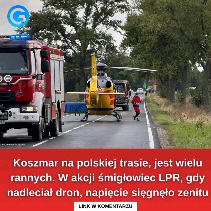 Ze względu na ciężki stan rannych, podjęto decyzję o zadysponowaniu śmigłowca LPR “Ratownik 13” z Wrocławia. Wówczas doszło do szokującej sytuacji. Kiedy maszyna przygotowywała się do lądowania, nad okolicą pojawił się dron utrudniający działania służb – podaje “Fakt”.