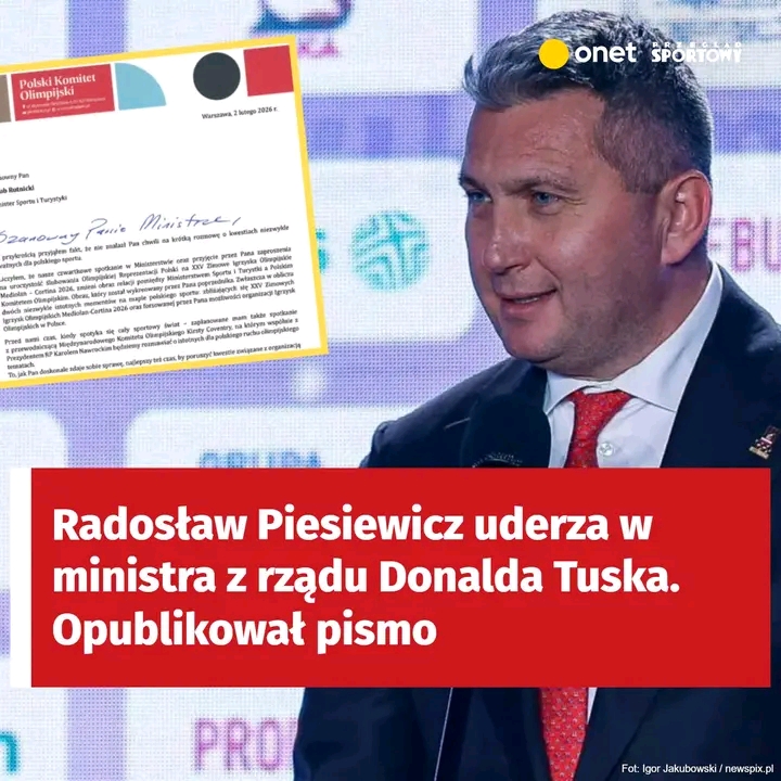 “Szanowny Panie Ministrze, przesyłam do Pana pismo — drogą oficjalną, ale pozwoli Pan, że poinformuję go także w ten sposób. Mam wrażenie, że nie docierają do Pana wszystkie moje pisma. W tym ważnym aspekcie, chciałbym takiej ewentualnej sytuacji uniknąć. Liczę na Pana odpowiedź. Zróbmy to dla dobra polskiego sportu” — czytamy we wpisie Radosława Piesiewcza, do którego załączył pismo.