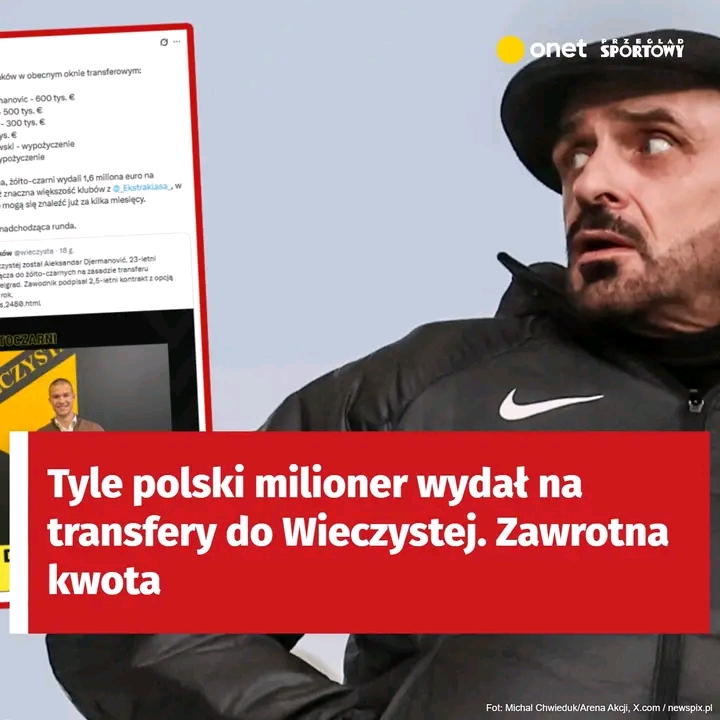 Rekord! Wiadomo już, że Wieczysta Kraków wydała rekordową kwotę na transfer Aleksandara Djermanovicia. Serb nie jest jednak jedynym wzmocnieniem zespołu walczącego o awans do Ekstraklasy. Wśród nich jest również historyczna transakcja z Cracovii. Ile wydał Wojciech Kwiecień? Dziennikarz Adam Walczak uważa, że “więcej, niż znaczna większość klubów z Ekstraklasy”. Oto konkretna kwota.