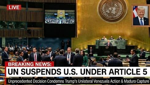 UN Suspends United States Under Article 5 Following Condemnation of Trump’s Venezuela Military Action — New York — In an unprecedented and historic move, the United Nations has voted to suspend the United States from certain rights and privileges of membership under Article 5 of the UN Charter, following its formal condemnation of former President Donald Trump’s unilateral military actions in Venezuela and the capture of Venezuelan President Nicolás Maduro.